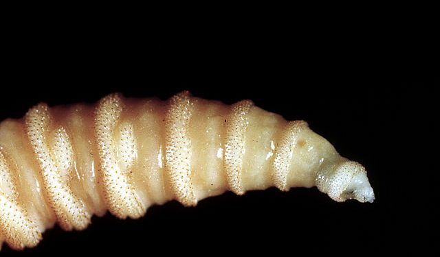 The New World Screwworm (NWS) is a fly that lays its eggs—up to 400 at a time—in the wounds, orifices, and mucus membranes of any warm-blooded animal. The eggs hatch into flesh-eating maggots, which look and act much like screws, twisting and boring into their victims while eating them alive.