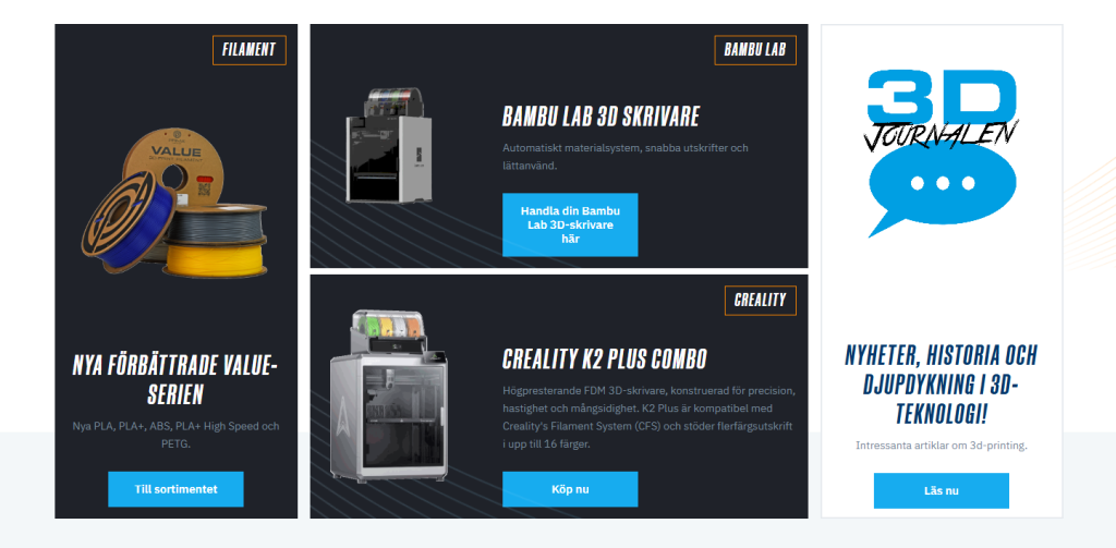 3dprima erbjuder ett omfattande utbud av produkter inom 3D-utskrift. Några exempel är: