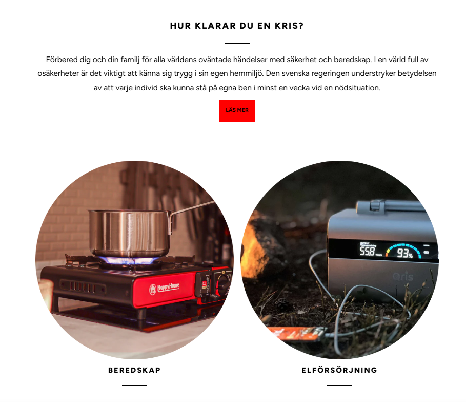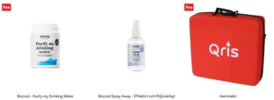 - Kompletta beredskapslösningar – du kan köpa färdiga kit eller välja individuella produkter beroende på dina behov