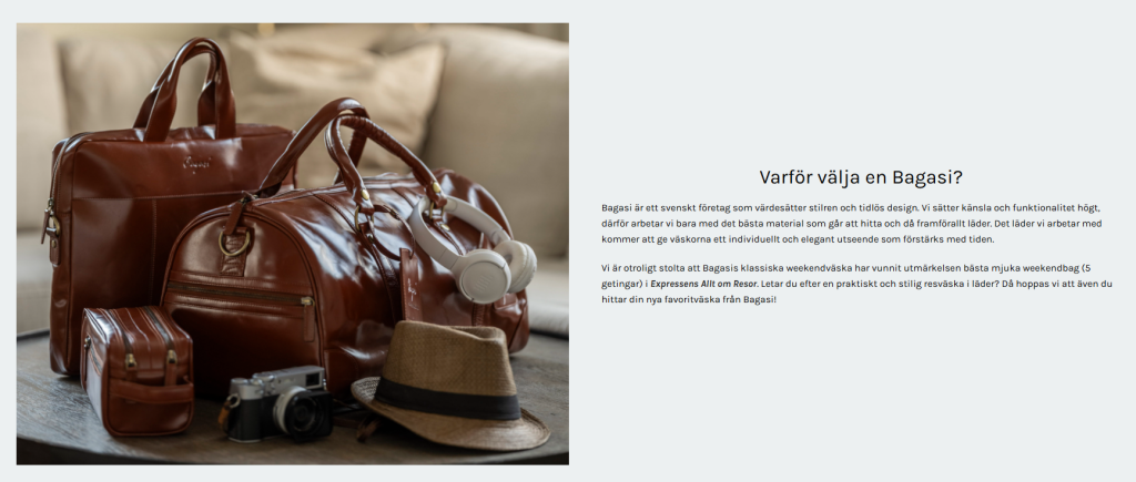 Bagasi är ett företag som specialiserar sig på högkvalitativa väskor och resväskor för både resenärer och vardagsanvändare. Vad som gör Bagasi speciellt är deras fokus på hållbarhet, funktionalitet och stilren design. Kunder kan vara säkra på att varje produkt är noggrant utvald för att kombinera praktiska egenskaper med ett snyggt utseende.