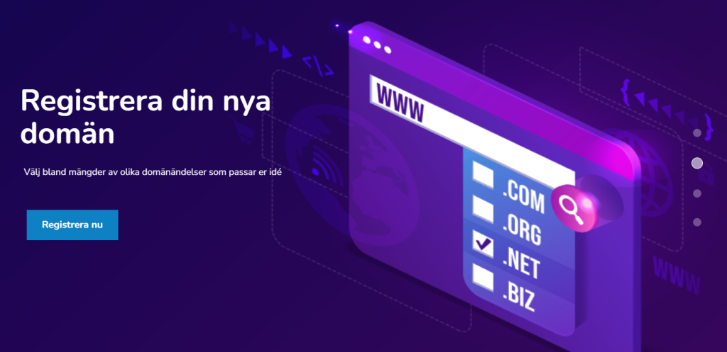 En viktig del av Wopsas tjänster är möjligheten att registrera domännamn enkelt. Här kan du välja mellan flera olika toppdomäner som: